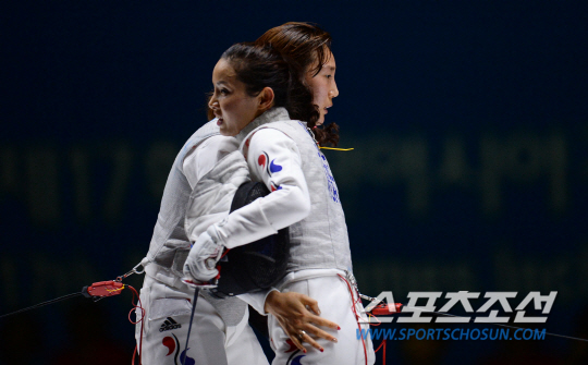 [AG포토] 전희숙-남현희 '승패를 떠난 뜨거운 포옹'