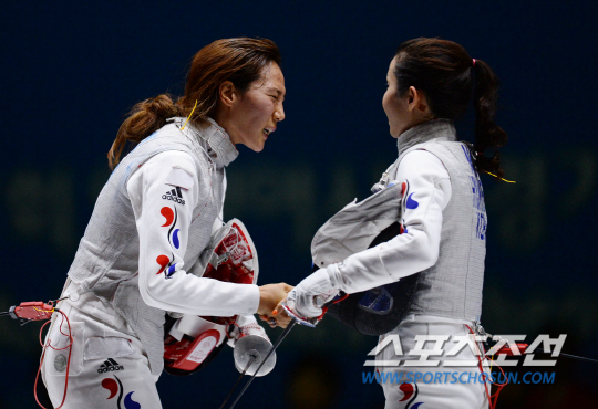 한국여자펜싱 플뢰레 전희숙(서울시청)이 21일 고양체유관에서 열린 2014 인천아시안게임 준결승에서 남현희(성남시청)를 상대로 15대7로 승리했다.