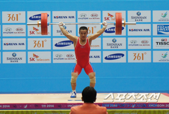 2002년 부산아시안게임 이후 12년만에 북한의 인공기가 한국 하늘에 펄럭였다. 바벨을 플랫폼에 내려놓는 순간 경기장에는 북한 최고 역도 스타의 이름이 메아리쳤다.