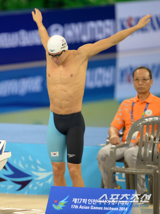 2014 인천아시안게임에 출전한 '마린보이' 박태환이 21일 인천 문학박태환수영장에서 열린 남자 자유형 200m 예선경기에서 레이스를 준비하고 있다. 박태환은 200m 예선에서 전체 4위로 결선에 진출했다.