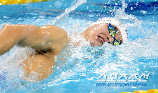 21일 인천 문학박태환수영장에서 열린 2014 인천아시안게임 남자 자유형 200m 예선경기에서 중국의 쑨양이 힘차게 질주하고 있다. 쑨양은 200m 예선에서 전체 1위로 결선에 진출했다.