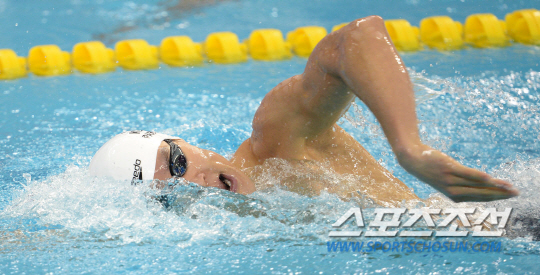 2014 인천아시안게임에 출전한 '마린보이' 박태환이 21일 인천 문학박태환수영장에서 열린 남자 자유형 200m 예선경기에서 힘차게 질주하고 있다. 박태환은 200m 예선에서 전체 4위로 결선에 진출했다.