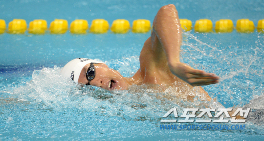 2014 인천아시안게임에 출전한 '마린보이' 박태환이 21일 인천 문학박태환수영장에서 열린 남자 자유형 200m 예선경기에서 힘차게 질주하고 있다. 박태환은 200m 예선에서 전체 4위로 결선에 진출했다.