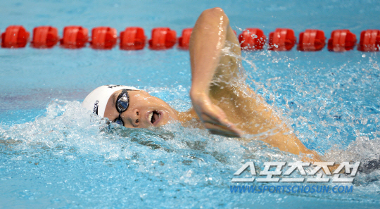 2014 인천아시안게임에 출전한 '마린보이' 박태환이 21일 인천 문학박태환수영장에서 열린 남자 자유형 200m 예선경기에서 힘차게 질주하고 있다. 박태환은 200m 예선에서 전체 4위로 결선에 진출했다.