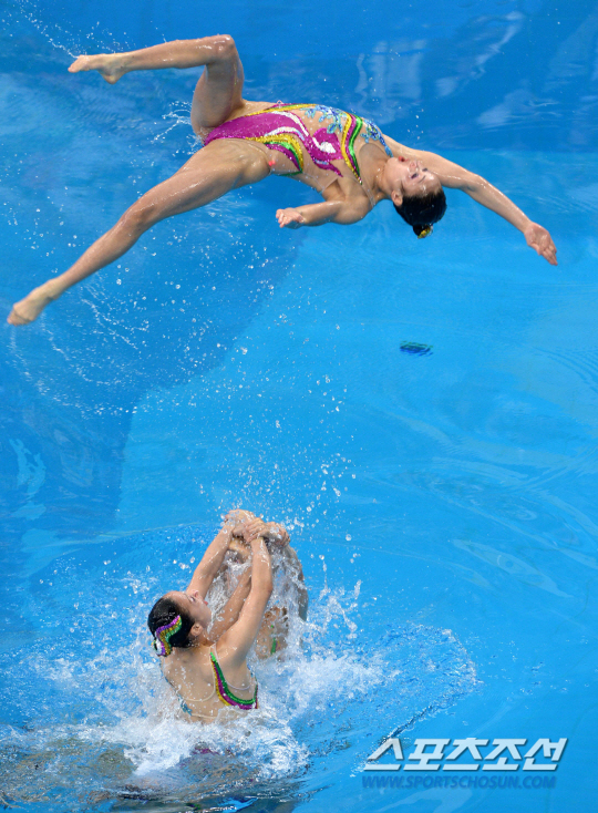2014 인천아시안게임 싱크로나이즈드스위밍 여자 단체 결승전이 21일 인천 문학박태환수영장에서 열렸다. 경기에 출전한 북한 선수들이 연기를 펼치고 있다. 북한은 83.3914의 점수로 3위를 기록했다.
