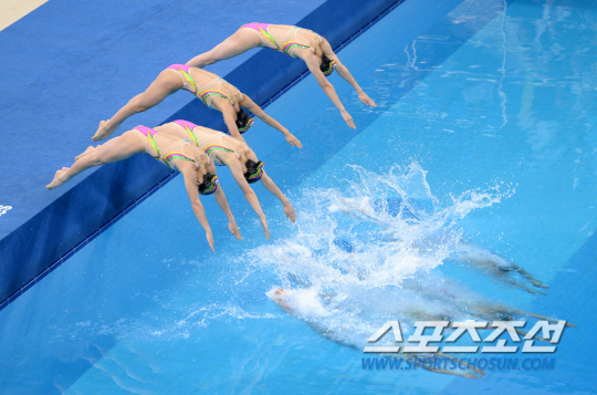 [AG포토] 북한 싱크로나이즈드, '바른 자세로 입수!'