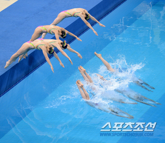 [AG포토] 북한 싱크로나이즈드, 입수 자세가 깨끗해~