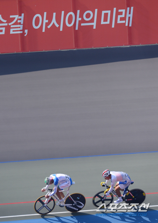한국남자사이클 조호성이 22일 인천국제벨로드롬에서 열린 2014 인천아시안게임 남자 옴니옴 스크레치 15km 레이스에서 역주하고 있다.