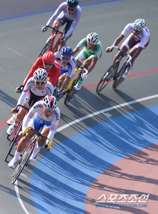 한국남자사이클 조호성이 22일 인천국제벨로드롬에서 열린 2014 인천아시안게임 남자 옴니옴 스크래치 15km 레이스에서 역주하고 있다.