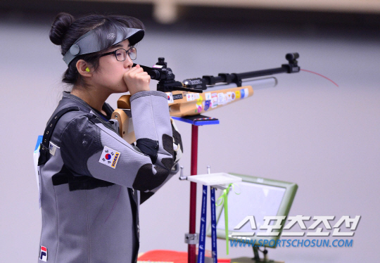 22일 오전 인천 옥련국제사격장에서 2014 인천 아시안게임 여자 사격 10M 공기소총 결승전이 열렸다. 한국 김설아가 손의 땀을 말리고 있다.