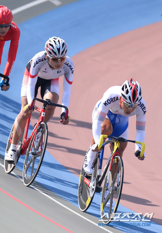 한국남자사이클 조호성이 22일 인천국제벨로드롬에서 열린 2014 인천아시안게임 남자 옴니옴 스크래치 15km 레이스에서 역주하고 있다.
