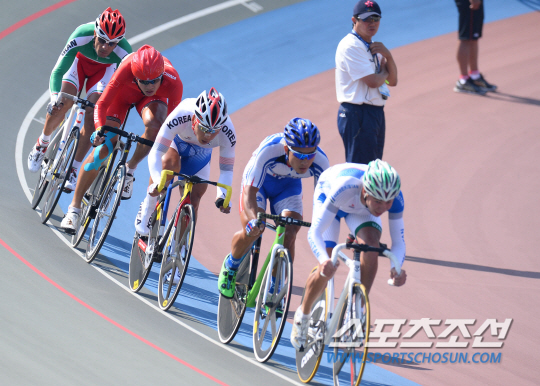 한국남자사이클 조호성이 22일 인천국제벨로드롬에서 열린 2014 인천아시안게임 남자 옴니옴 스크래치 15km 레이스에서 역주하고 있다.