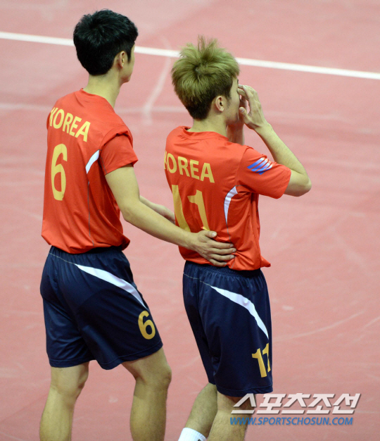 2014 인천아시안게임 남자 세팍타크로 더블 결승, 한국과 미얀마의 경기가 22일 부천체육관에서 열렸다. 세트스코어 2-0으로 아쉽게 패하며 은메달 획득에 성공했다. 경기를 마친 선수들이 아쉬워하고 있다.