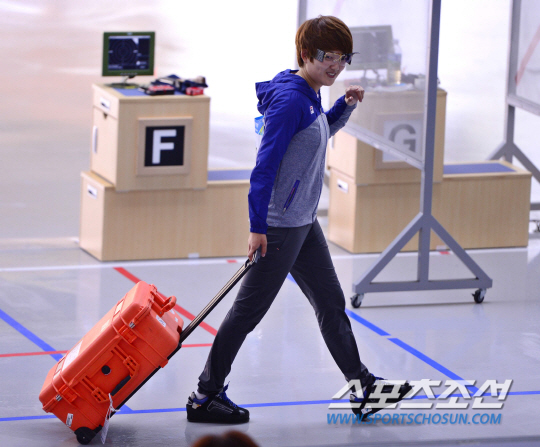 22일 오전 인천 옥련국제사격장에서 2014 인천 아시안게임 사격 여자 25M 권총 개인 결승전이 열렸다. 한국 김장미가 경기 준비를 마친 후 이동하고 있다.