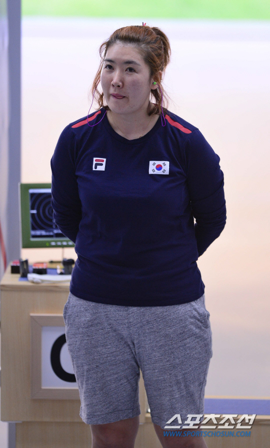 22일 오전 인천 옥련국제사격장에서 2014 인천 아시안게임 사격 여자 25M 권총 개인 결승전이 열렸다. 한국 곽정혜가 선수소개 때 인사를 하고 있다.