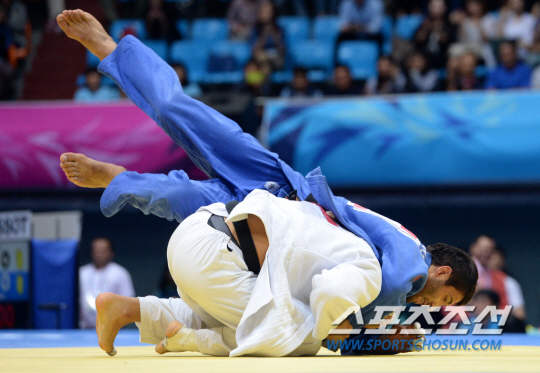 2014 인천아시안게임 남자 유도 -90Kg 동메달 결정전 곽동한과 타지키스탄의 우스토피리온의 경기가 22일 인천 도원체육관에서 열렸다. 곽동한이 연장 우세승으로 동메달을 획득했다. 곽동한이 우스토피리온과 접전을 벌이고 있는 모습.