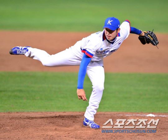 21일 오후 인천 문학구장에서 2014 인천 아시안게임 야구 한국과 태국의 경기가 열렸다. 4회초 등판한 한국 이태양이 태국 선수들을 상대로 힘차게 볼을 던지고 있다.