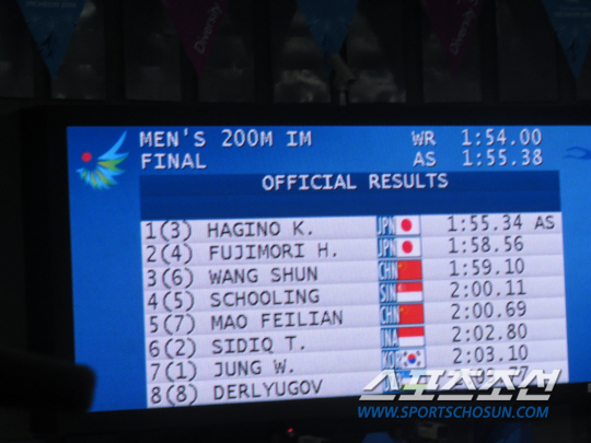 '일본 수영 신성' 하기노 고스케가 자신의 주종목인 개인혼영 200m,에서 1분55초34, 아시아최고기록으로 또하나의 금메달을 목에 걸었다.
