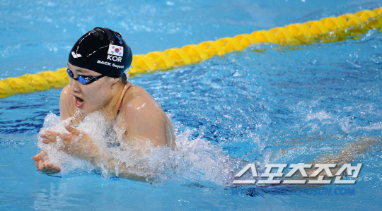 한국여자수영 백수연이 22일 오후 인천 박태환수영장에서 진행된 '2014 인천아시안게임' 수영 여자 평영 200m 결선에서 역영을 펼치고 있다.