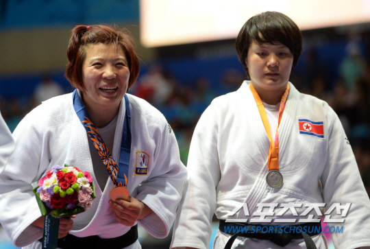 한국 여자 유도의 간판 정경미가 '라이벌' 북한의 설경과 금메달을 놓고 남북 대결을 펼쳤다. 2014 인천아시안게임 여자 유도 -78Kg 결승전 한국의 정경미와 북한의 설경의 경기가 22일 인천 도원체육관에서 열렸다.