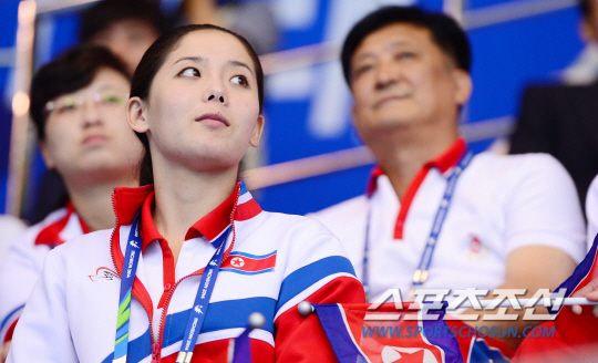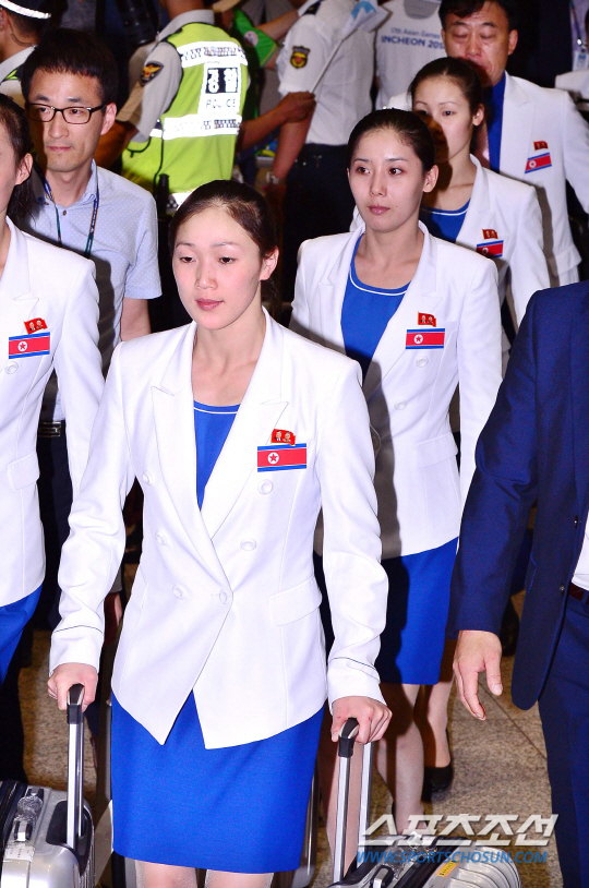 '남남북녀'라 했던가. 남자는 남부지방의 남자가 잘났고, 여자는 북부지방의 여자가 잘났다는 것을 표현한 속설이다. 2014 인천 아시안게임(이하 인천AG)에서 이러한 속설이 여실히 나타났으니... 북한 싱크로나이즈드 스위밍의 김은아를 두고 하는 말 같다. 지난 16일 인천AG 북한 본진에 속해 입국했을 때부터 남다른 외모를 보여준 그녀는 19일 개막식에서도 그 아름다움을 뽐냈다. 갸름한 얼굴에 늘씬한 몸매로 북한 선수단의 미모를 자랑하는 그녀를 보면 '남남북녀'라는 말이 틀리진 않은 것 같다. 16일 입국부터 그녀의 모습을 따라가 보자. 김경민 기자 kyungmigmin@sportschosun.com