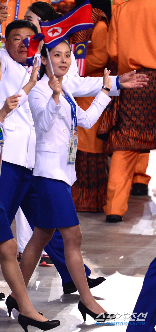 19일 개막식 선수단 입장때의 모습. 늘씬한 몸매로 인공기를 들고 입장하는 그녀의 모습은 아름다웠다.
