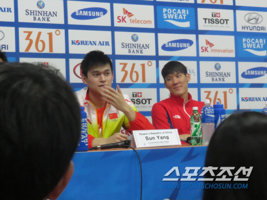 쑨양은 21일 남자자유형 200m 경기에서 '일본 신성' 하기노 고스케에게 1위를 내줬다. 자신의 아시아최고기록(1분44초47)에 한참 못미치는 1분45초28을 찍었다. 터치패드를 찍은 직후 숨을 헐떡이며 상당히 힘들어하는 모습을 보였다. 런던올림픽, 바르셀로나세계선수권 금메달 때보다 훈련량, 컨디션은 확실히 떨어져 있는 상태다. 이날 은메달 후 기자회견에서 엄지 통증을 호소하며 경기소감만 간단히 밝힌 후 자리를 떴었다. 이후 인천의 한 종합병원에서 새벽까지 손가락 치료를 받았다. 22일 남자계영 800m에도 출전하지 않았다.