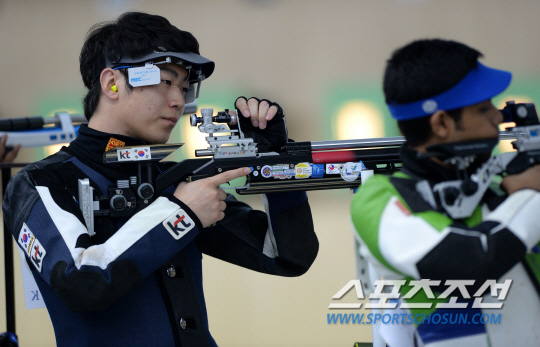 2014 인천아시안게임 사격 남자 10m 공기소총 본선이 23일 인천 옥련국제사격장에서 열렸다. 김상도가 경기를 펼치고 있다. 남자 10m 공기소총에는 한진섭, 김상도, 김현준이 출전했다.