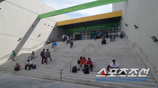 휴식공간이 없어 만남의 광장이 되어버린 옥련국제사격장 계단 인천=이 건 기자 bbadagun@sportschosun.com