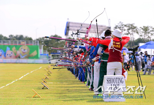 22일 오후 인천 계양사이아드 양궁경기장에서 양궁 리커브 여자 참가자격결정이 열렸다. 각국 선수들이 타겟을 향해 활시위를 당기고 있다. 인천=김경민 기자 kyungmin@sportschosun.com