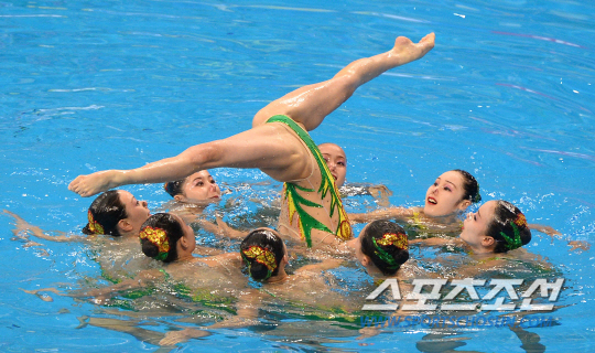 [AG포토] 싱크로나이즈드 북한팀 '완벽한 근육질 각선미'
