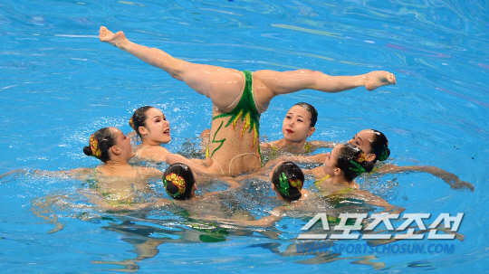 북한싱크로나이즈드 스위밍대표팀이 23일 인천문학박태환수영장에서 열린 2014인천아시안게임 여자프리컴비네이션 결승전에서 화려한 연기를 선보이고 있다.