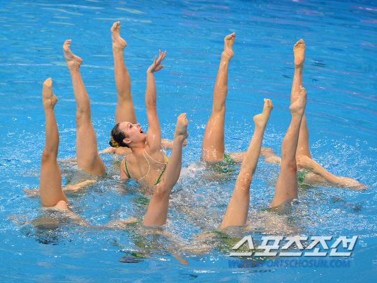 북한싱크로나이즈드 스위밍대표팀이 23일 인천문학박태환수영장에서 열린 2014인천아시안게임 여자프리컴비네이션 결승전에서 화려한 연기를 선보이고 있다.