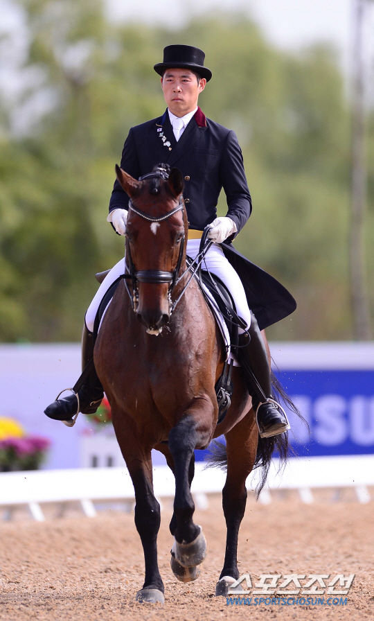 23일 오후 인천 드림파크 승마장에서 2014 인천 아시안게임 승마 마장마술 개인전이 열렸다. 한국 황영식이 마장마술 연기를 펼치고 있다.