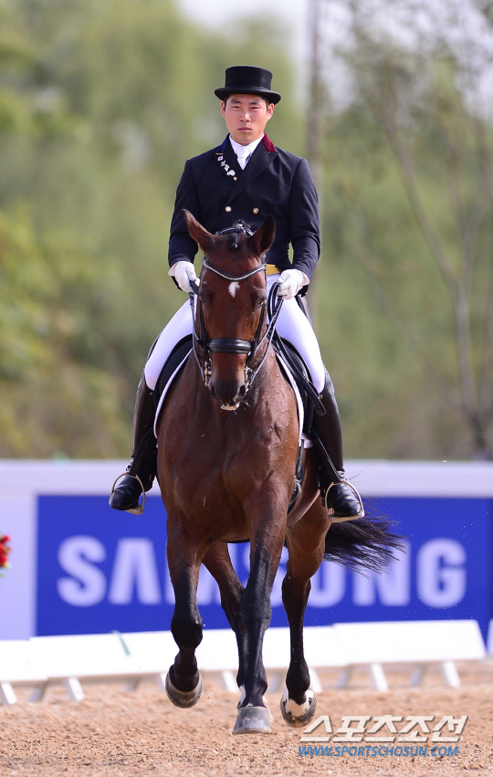 23일 오후 인천 드림파크 승마장에서 2014 인천 아시안게임 승마 마장마술 개인전이 열렸다. 한국 황영식이 마장마술 연기를 펼치고 있다.