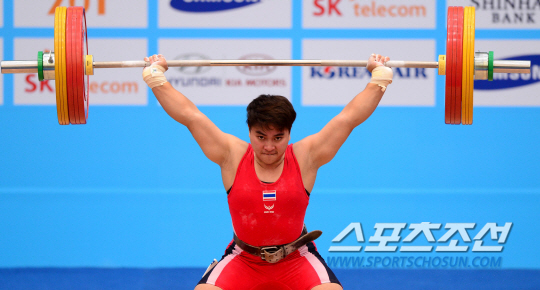 23일 인천 송도 달빛축제정원 역도경기장에서 '2014인천아시아경기대회' 역도 여자 63kg급 경기가 열렸다. 태국대표 시리카우 선수가 인상 1차시기를 성공시키고 있다.
