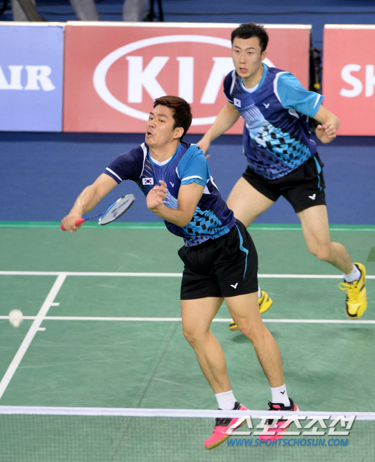 2014 인천아시안게임 배드민턴 남자 단체전 결승 23일 인천 계양체육관에서 열렸다. 2경기에서 이용대-유연성 조가 중국의 수 첸-장 난 조와의 경기를 펼쳤다. 힘차게 공격을 시도하는 이용대.