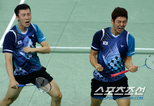 2014 인천아시안게임 배드민턴 남자 단체전 결승 23일 인천 계양체육관에서 열렸다. 2경기에서 이용대-유연성 조가 중국의 수 첸-장 난 조와의 경기를 펼쳤다. 1세트를 듀스 끝에 승리한 후 포효하는 이용대와 유연성.