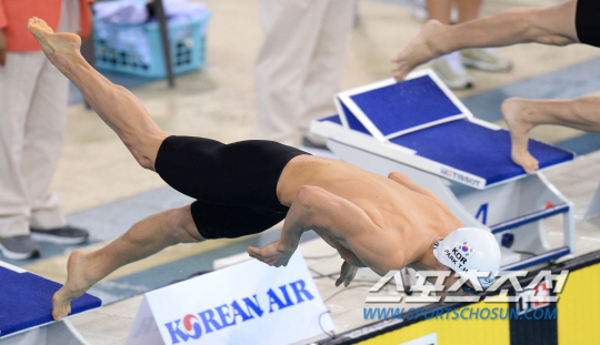 [AG포토] 박태환 '입수를 위한 힘찬 도약'