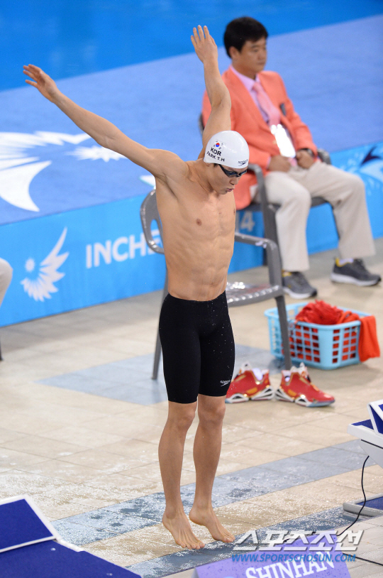 한국수영대표팀 박태환이 23일 인천 문학박태환수영장에서 열린 2014인천아시안게임 남자 400m 자유영 결승전에서 준비운동을 하고있다.