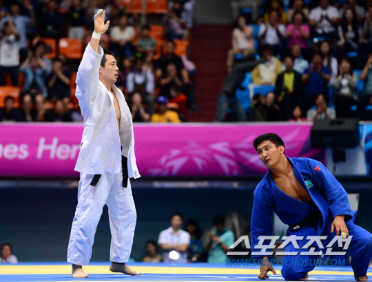 23일 인천 도원체육관 유도경기장에서 '2014인천아시아경기대회' 유도 남녀 단체전이 열렸다. 유도 단체전은 이번 아시안게임에서 처음 도입됐다. 개인전에서 금메달을 따낸 김재범과 정다운, 김성연이 단체전에 참가해 한국 유도 최초로 아시안게임 2관왕에 도전했다. 남자결승 2경기 대한민국 방귀만이 카자흐스탄 이키베이예프에게 승리를 거뒀다.