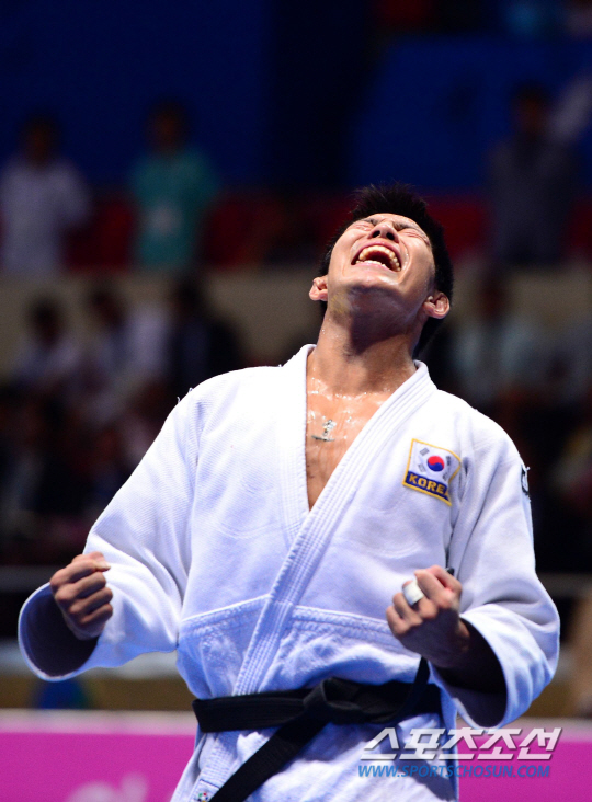 23일 인천 도원체육관 유도경기장에서 '2014인천아시아경기대회' 유도 남녀 단체전이 열렸다. 유도 단체전은 이번 아시안게임에서 처음 도입됐다. 개인전에서 금메달을 따낸 김재범과 정다운, 김성연이 단체전에 참가해 한국 유도 최초로 아시안게임 2관왕에 도전했다. 남자결승 3경기 대한민국 김재범이 카자흐스탄 칼카마누에게 승리를 거뒀다. 환호하고 있는 김재범.