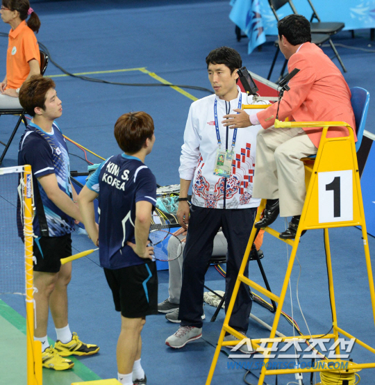 2014 인천아시안게임 배드민턴 남자 단체전 결승 23일 인천 계양체육관에서 열렸다. 4경기에서 김기정-김사랑 조가 중국의 자이 윈-푸하이 펑 조와 경기를 펼쳤다. 3세트 중국의 득점때 김사랑이 중국 선수의 몸에 맞았다며 어필을 했으나 받아들여지지 않고 있다.