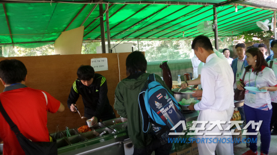 도시락 공급이 원활하지 않자 다들 제 살길을 찾았다. 특히 사격장의 경우 절박했다. 경기장 자체가 산중 깊숙한 곳에 있다. 밥을 먹으러 나가려면 5~10분 정도는 걸어가야한다. 이 덕분에 사격장 바로 앞에 있는 유일한 식당 하나가 대박을 쳤다. 오리 로스 구이나 닭백숙을 파는 이 식당은 한식 뷔페를 준비했다. 화려한 반찬은 없었지만 샐러드와 각종 김치, 감자 조림과 시래기국을 냈다. 한국 사람은 물론이고 외국 선수들과 임원들도 와서 정답게 밥을 먹었다. 외국 선수들과 임원들은 "도시락보다 차라리 여기 밥이 낫다"면서 엄지를 치켜세웠다. 인천=이 건 기자 bbadagun@sportschosun.com
