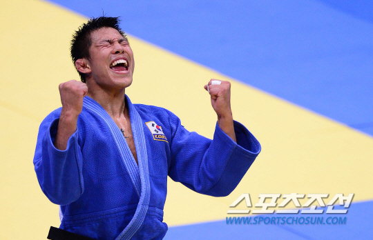 21일 오후 인천 송림체육관에서 2014 인천 아시안게임 유도 남자 -81kg 결승전이 열렸다. 레바논 엘리아스를 꺽고 금메달을 차지한 한국 김재범이 환호하고 있다. 인천=김경민 기자 kyungmin@sportschosun.com