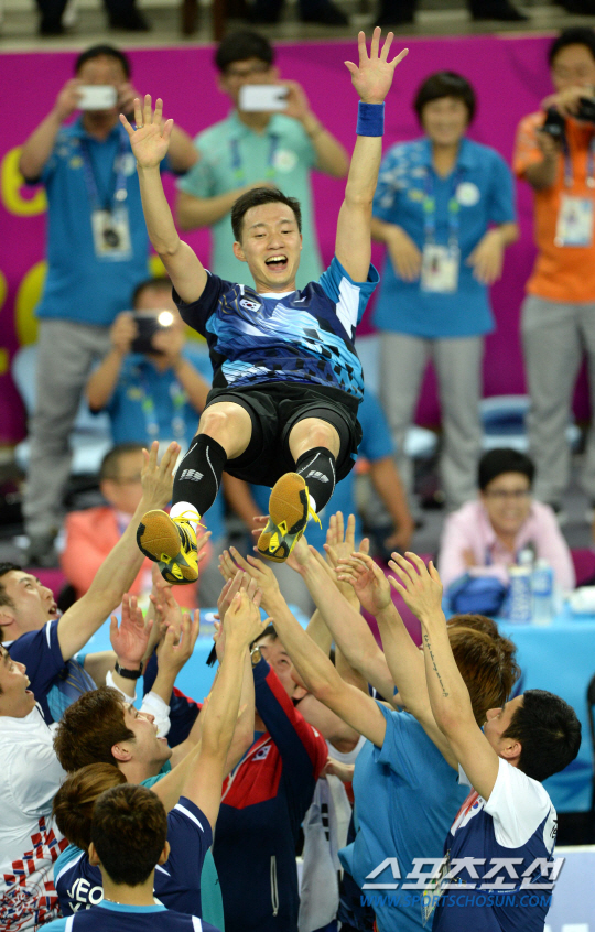 그의 역할은 그걸로 끝나지 않았다. 23일 인천 계양체육관에서 벌어진 중국과의 배드민턴 남자 단체 결승전 매치 스코어 2-2에서,우승을 확정하는 다섯번째 매치를 따냈다. 분위기가 중국으로 넘어갈 수 있는 상황에서 열살이 어린 중국의 영건 가오후안(24)을 2대0(21-14 21-18)으로 제압했다. 한국이 매치 스코어 3대2로 우승했다. 2002년 부산대회 이후 12년만에 정상에 올랐다.