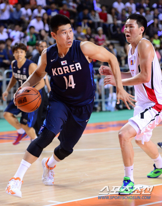 24일 오후 경기도 화성시 화성종합경기장 타운실내체육관에서 2014 인천 아시안게임 몽골과 한국의 경기가 열렸다. 한국 오세근이 돌파를 시도하고 있다.