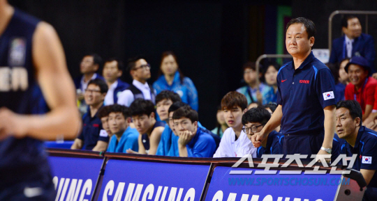 24일 오후 경기도 화성시 화성종합경기장 타운실내체육관에서 2014 인천 아시안게임 몽골과 한국의 경기가 열렸다. 한국 유재학 감독이 선수들의 경기를 지켜보고 있다.