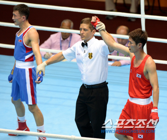 2014 인천아시안게임 복싱 60Kg 라이트급에 출전한 한순철이 32강에서 북한의 한상령과 맞대결을 펼쳤다. 24일 인천 선학체육관에서 열린 경기에서 한순철이 판정승을 거두고 있다.