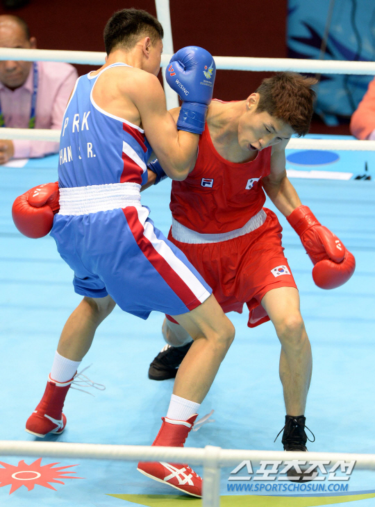2014 인천아시안게임 복싱 60Kg 라이트급에 출전한 한순철이 32강에서 북한의 한상령과 맞대결을 펼쳤다. 24일 인천 선학체육관에서 열린 경기에서 한순철이 판정승을 거뒀다. 접전을 펼치는 한순철과 한상령의 모습.